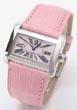 文字盤のピンクシェルとリューズ先のピンクのストーンが乙女心をくすぐります。 |